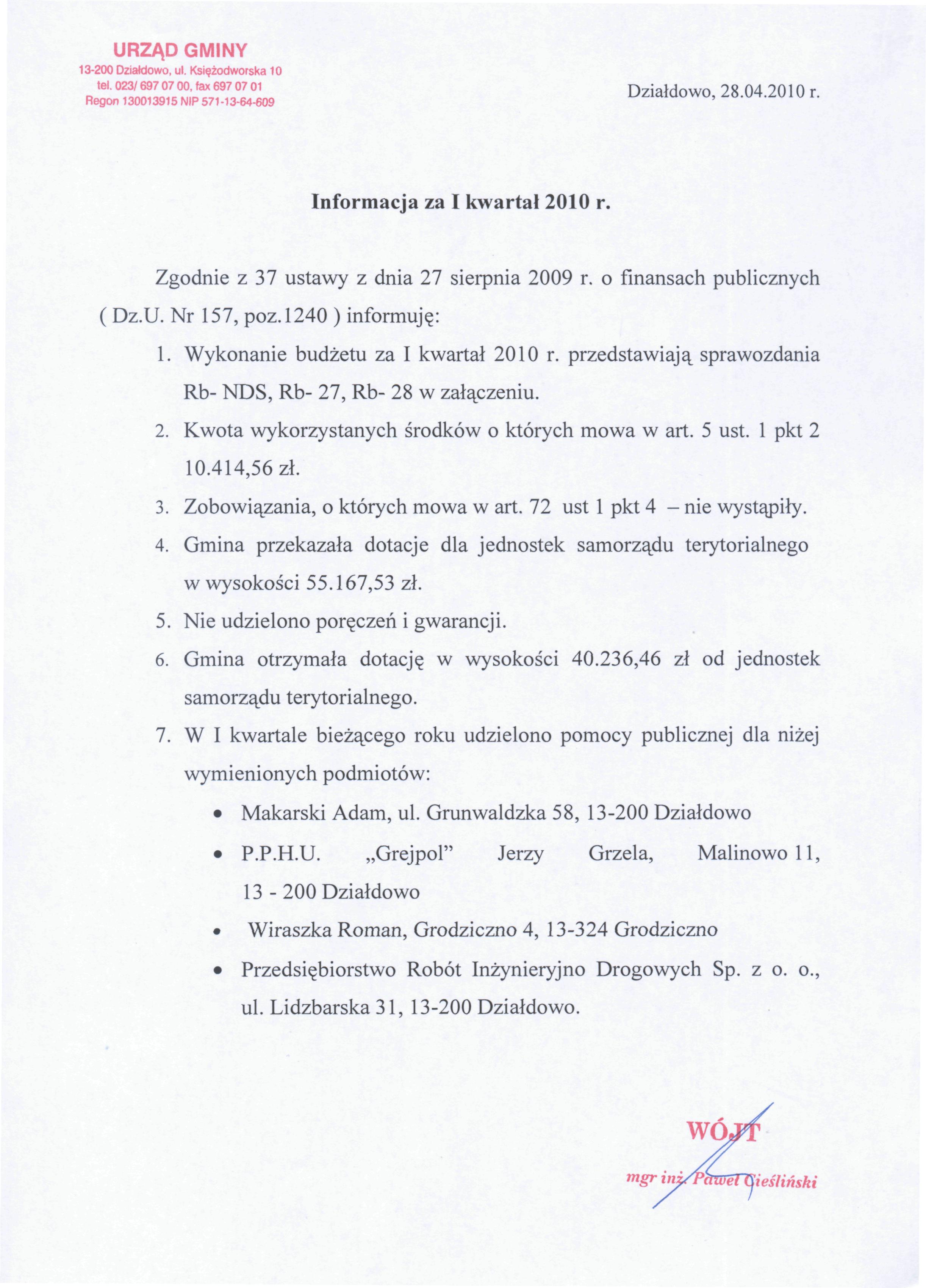 | Informacja za I kwartał 2010 (564.4kB) | ||