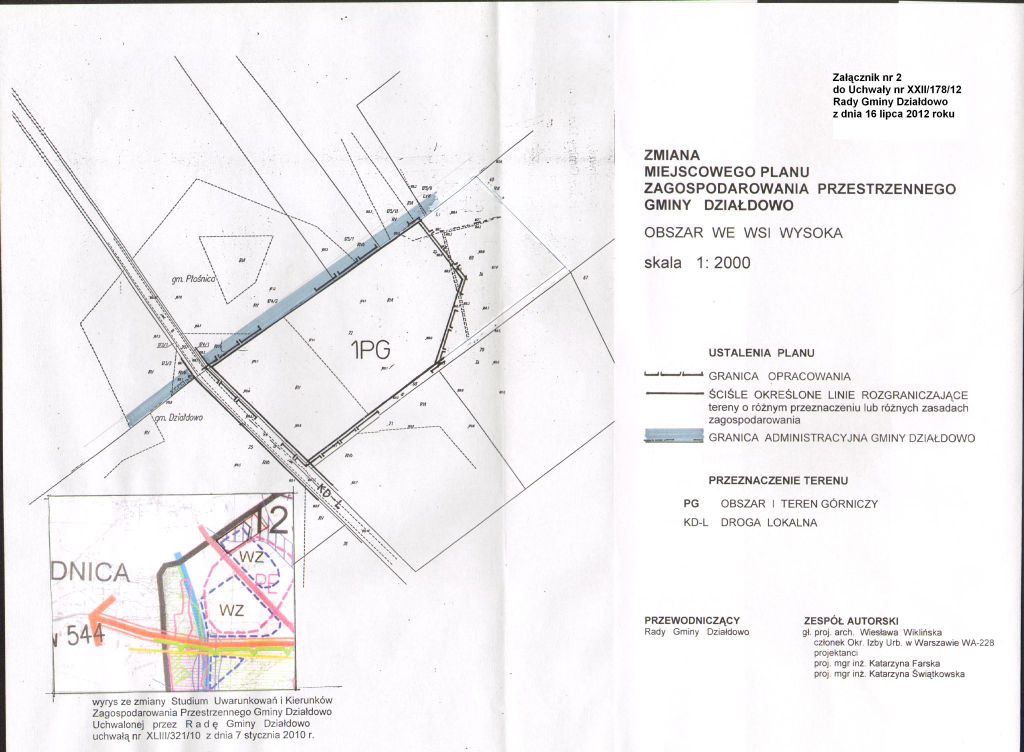 w sprawie uchwalenia zmiany miejscowego planu zagospodarowania przestrzennego gminy Działdowo w obrębie Wysoka.
